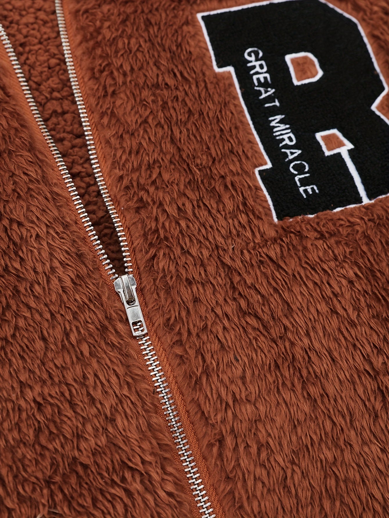 - Eigenschaften: Sherpa-Struktur, Varsity-inspirierter Bomber-Schnitt, Reißverschluss, gemütliche Passform